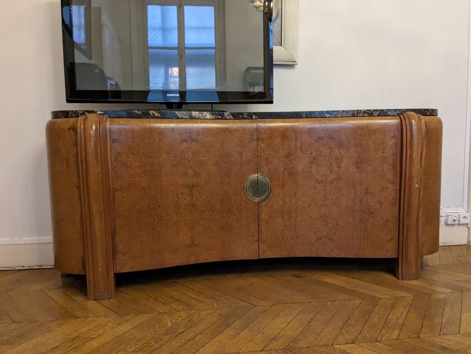 Inventaire 80.M.33. Loupe de thuya, dessus de marbre Portor.