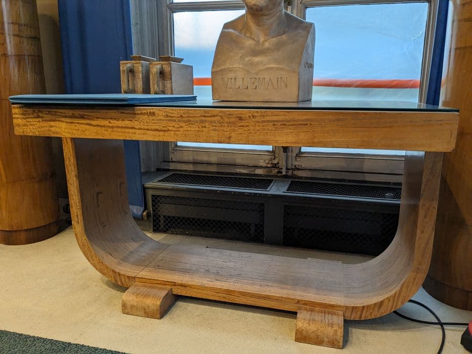 Inventaire 80.M.35. Table à empiètement incurvé. Bois de rapport.