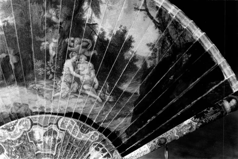POP | Plateforme ouverte du patrimoineéventail : Le Noble mariage (recto), Couple d'amoureux dans un paysage de taillis (verso)