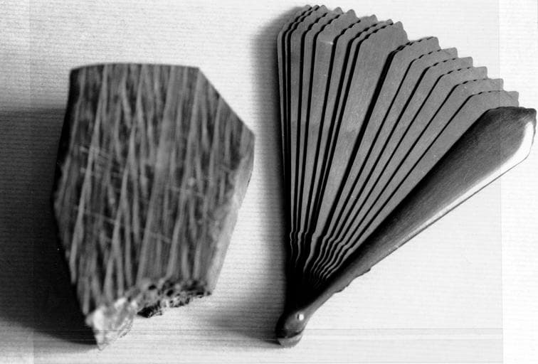 Morceau d'ébène servant de matière première pour la réalisation d'un éventail.