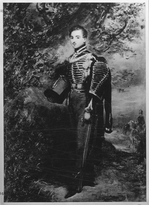 tableau : Portrait du 6e duc de Richelieu, né Jumilhac en pied et habit de hussard et son cadre