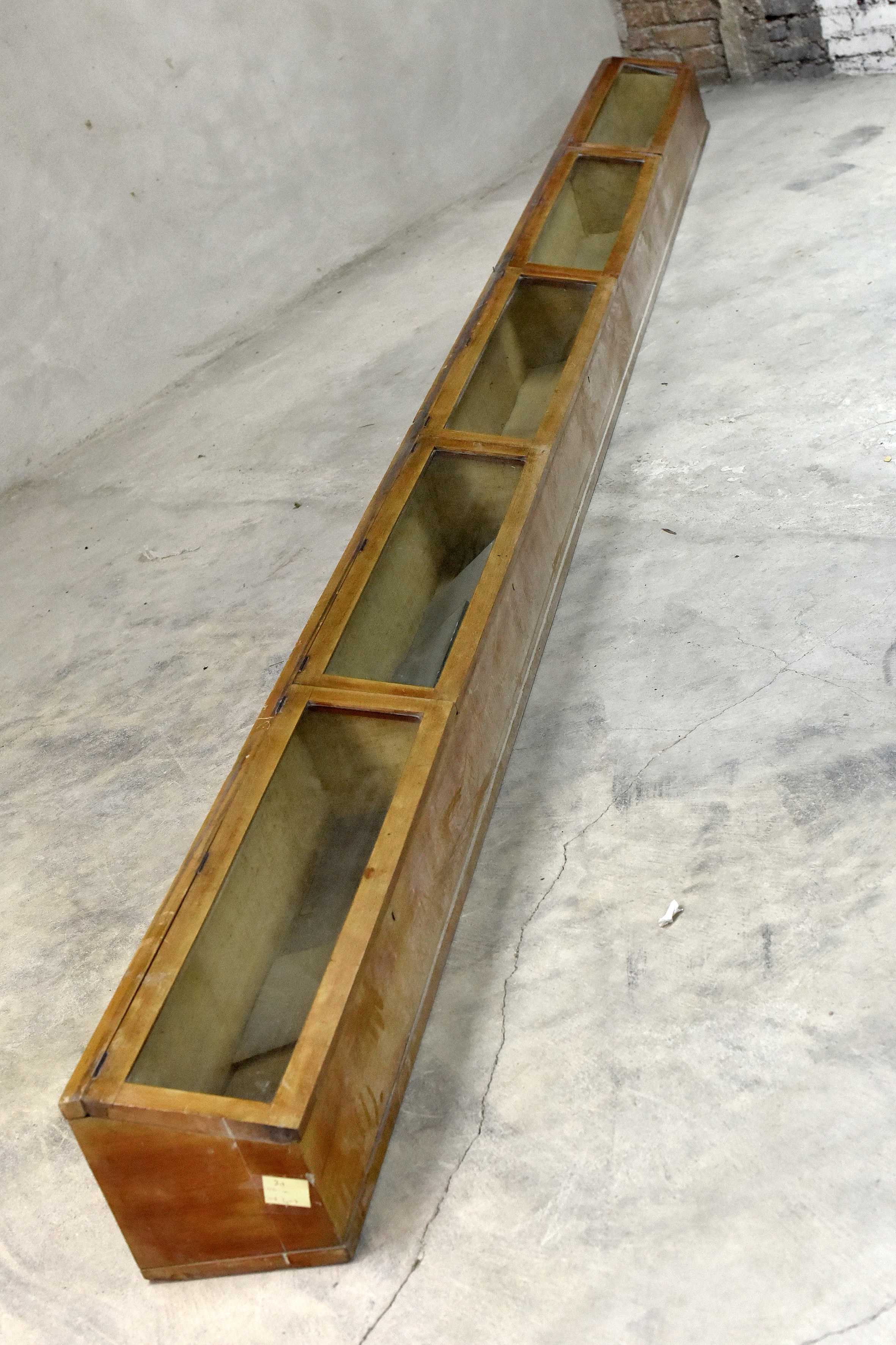 Cette vitrine fait partie d'un ensemble de quatre vitrines allongées avec les 2 vitrines PM75004485, la quatrième est manquante. Elles sont présentées devant les tableaux de Géo Michel.