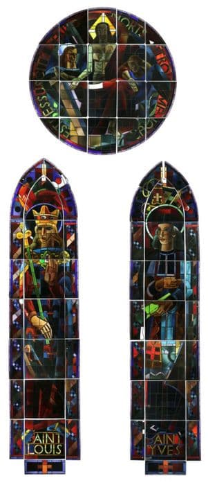 verrière illustrant un versant du Credo et représentant saint Louis et saint Yves