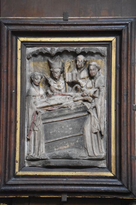 haut-relief : La Mise au tombeau d’un évêque