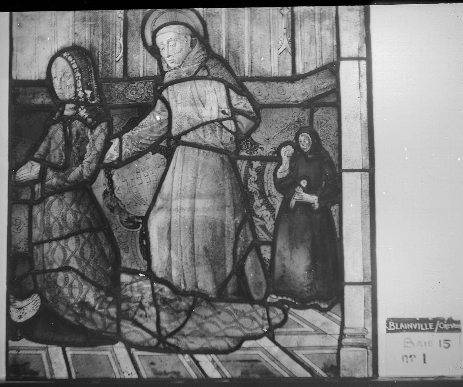 verrière : Vierge de Pitié et donatrice (baie 0)