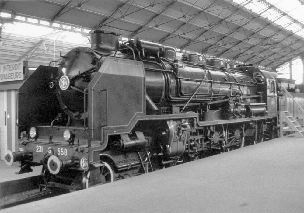 arrêté : locomotive à vapeur ex. 231 C état modifiée de 1935 à 1943 par l'ingénieur André Chapelon devenue 231 G 558 SNCF.