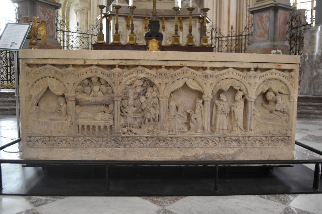 Un panneau latéral du coffre reliquaire représentant 'La Présentation au Temple' a été volé en février 2008 et a été retrouvé en juin 2008.
