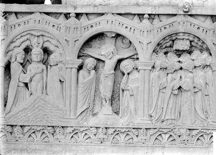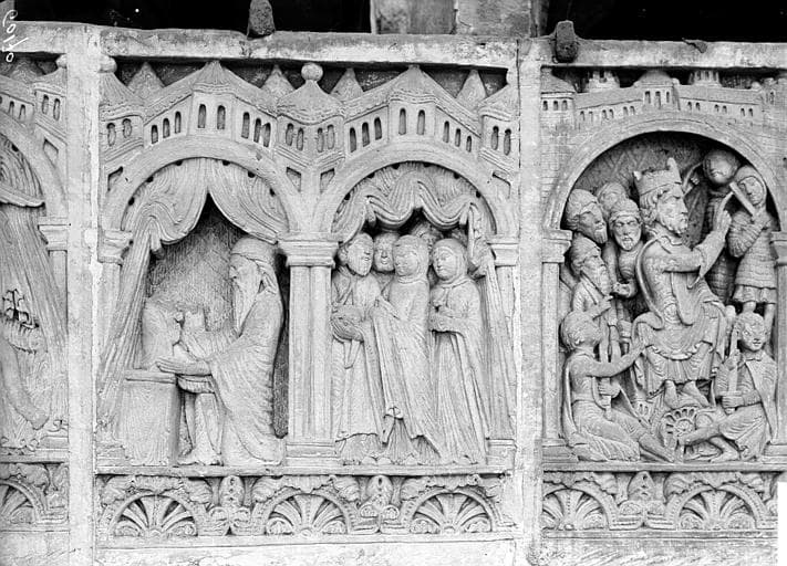 POP | Plateforme ouverte du patrimoinebas-relief : l'Annonciation, la Visitation, la Naissance du Christ, l'Adoration des bergers, l'Adoration des Mages, la Fuite en Egypte, le Baptême du Christ, la Crucifixion, la Résurrection