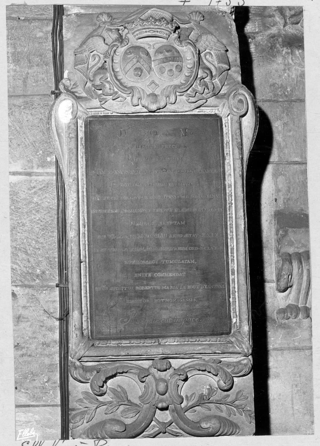 plaque funéraire de Françoise Catherine Clerel de Rampen, épouse de Pierre Robert Le Roux d'Esneval d'Acquigny