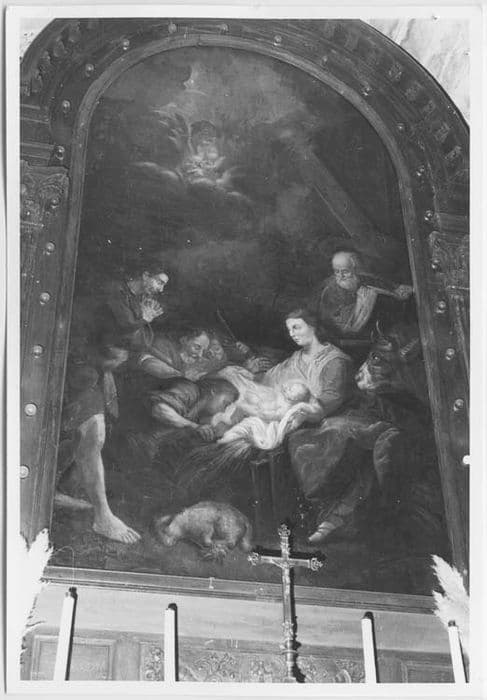 POP | Plateforme ouverte du patrimoineretable du maître-autel, tableau : Adoration des bergers et deux statues : Sainte Marguerite et Saint évêque