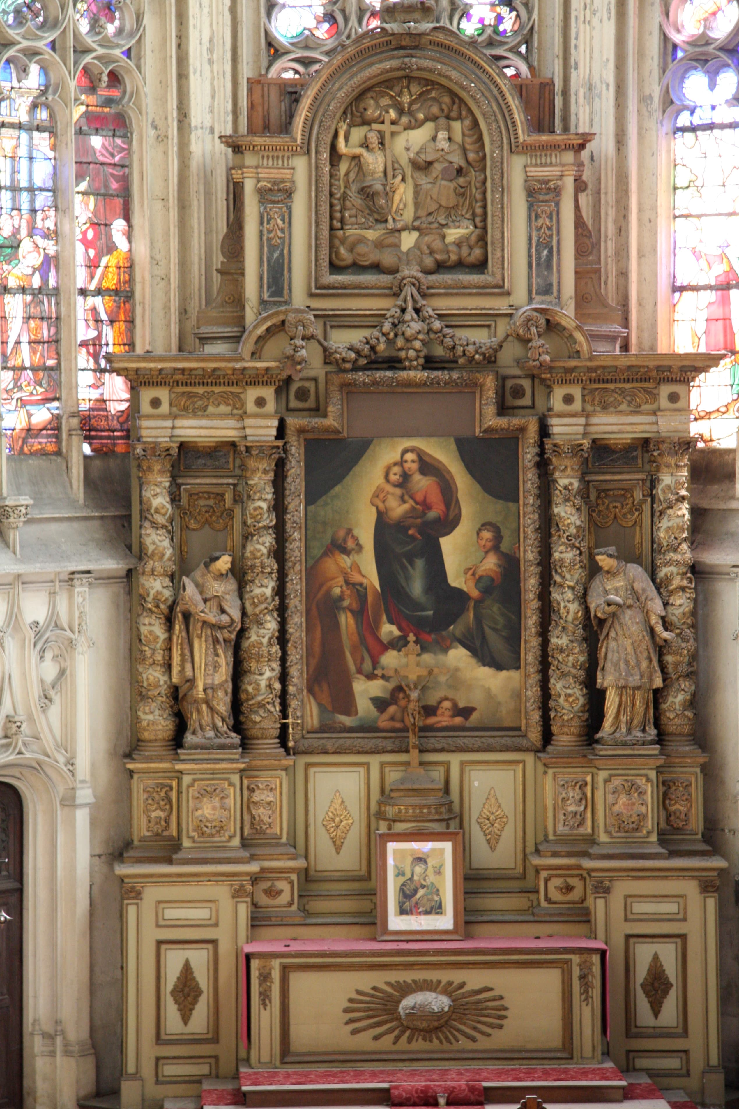 POP | Plateforme ouverte du patrimoineautel (maître-autel), son gradin, son tabernacle, son retable, le bas-relief : Trinité, et les deux statues : Saint Nicaise et Saint Quirin