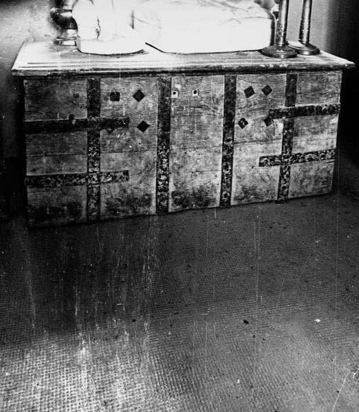 Coffre avec pentures en fer.