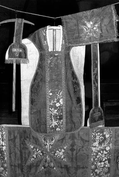 chasuble ; étole de clerc ; manipule ; voile de calice ; antependium
