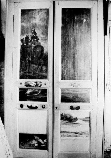 Armoire à double battant dont les six panneaux sont peints à l'huile.