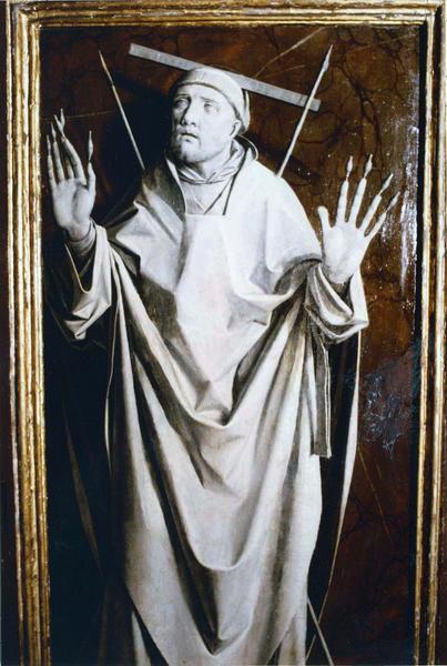 Tableau de l'école italienne. Ce tryptique a été acquis à Paris dans une vente publique, en 1912, par Madame Chanove et a été donné par elle à l'église en 1923. Des recherches en 2021 permettent de mieux comprendre cette oeuvre. L'extérieur des volets est l'oeuvre du peintre Changenet (source Charles Sterling et Sophie Caron et Elliot Adam dans La Maison Changenet. Une famille de peintres entre Provence et Bourgogne vers 1500).