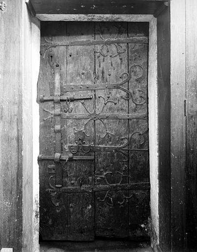Porte à un vantail muni de vertevelles et de pentures en fer forgé.
