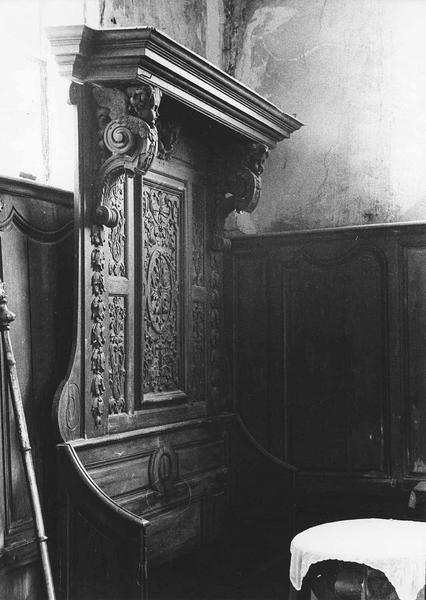 retable ; chaire à prêcher ; banc de fidèle ; lambris de revêtement ; banc d'oeuvre