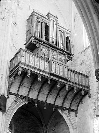 Le meuble constituant la tribune provient vraisemblablement d'un jubé. La tribune, de composition et d'esprit encore gothiques, fut exécutée probablement vers 1535. Le buffet d'orgue est plus récent que la tribune de quelques décennies. Il s'agit d'un des plus anciens buffets de France, précieux spécimen de l'art Renaissance appliqué au décor de l'orgue. Il doit dater de la fin du règne de François 1er ou début du règne d'Henri II.