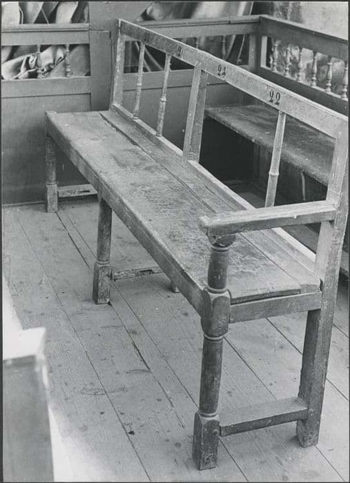 Bancs clos réservés aux fidèles, en bois tourné, numérotés.