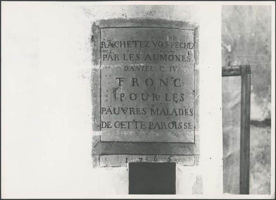 au-dessus du tronc des pauvres, sur une colonne