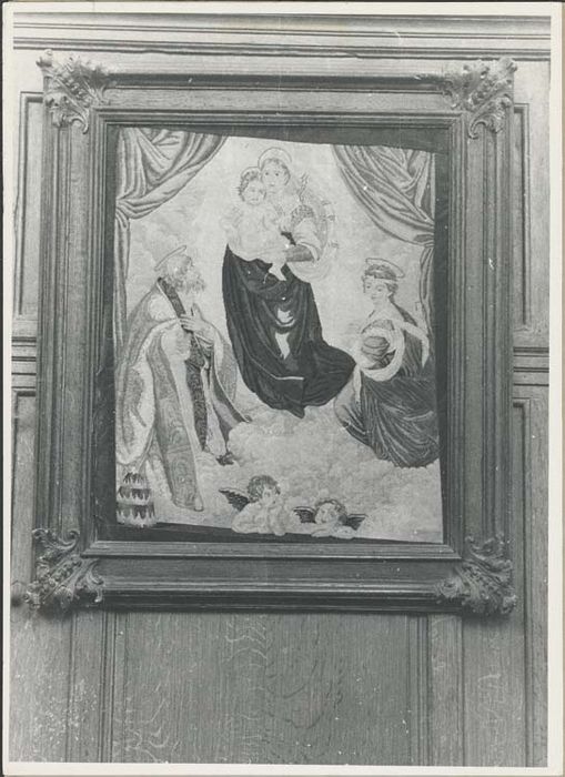 Vierge à l'Enfant ; angelot ; saint ; sainte