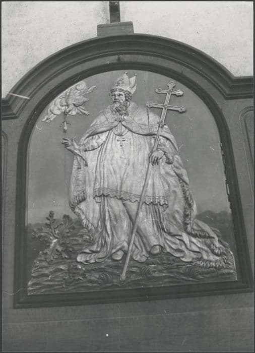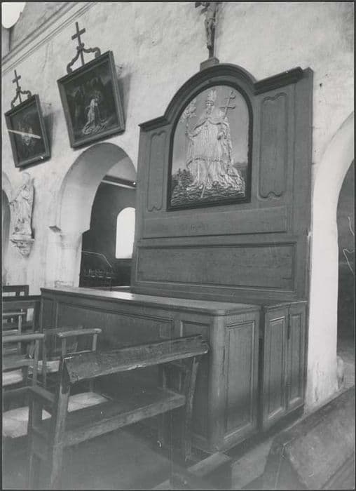 Banc d'oeuvre à panneaux moulurés et au centre un panneau cintré, sculpté de saint Rémi, patron de la paroisse, représenté en évêque.