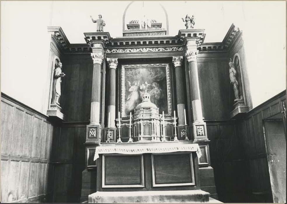 POP | Plateforme ouverte du patrimoineretable du maître-autel, tableau : Annonciation et quatre statues : Saint Géroche, Saint Sébastien et Vierge à l'Enfant