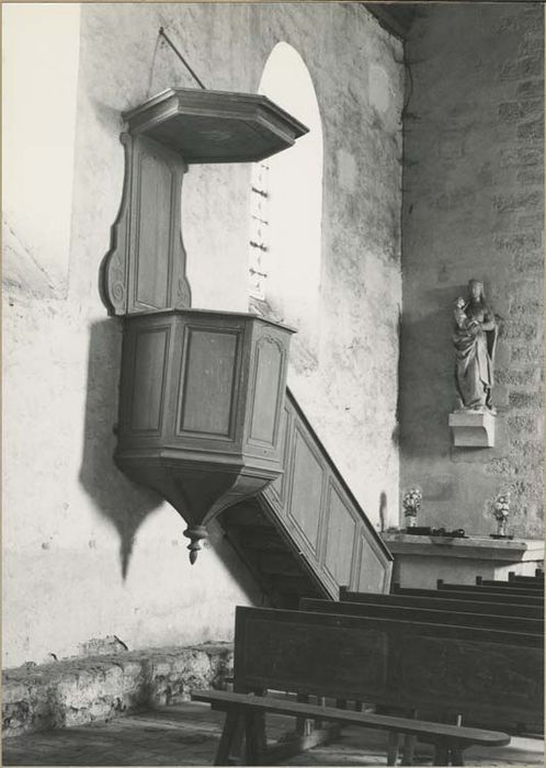 La chaire à prêcher conserve son escalier et son abat-voix.