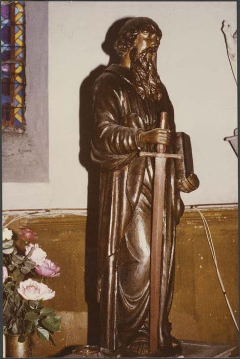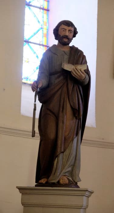 saint Pierre apôtre : clé, livre ; saint Paul de Tarse : épée, livre