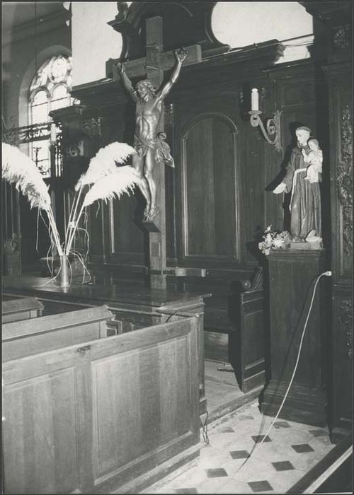 Le banc d'oeuvre date du 19e siècle avec des éléments du 17e siècle. Le tambour et la tribune de la porte principale datent du 17e siècle.