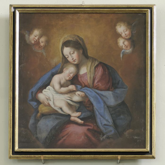 Tableau inspiré d'une des compositions de Vierge à l'Enfant de Giovani Battista Salvi dit Il Sassoferrato (1609-1685). Voir notamment le tableau Madonna con il Bambino (huile sur toile, Pinacoteca comunale de Cesena).