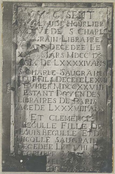 dalle funéraire de Claude Hourlier, veuve de Charles