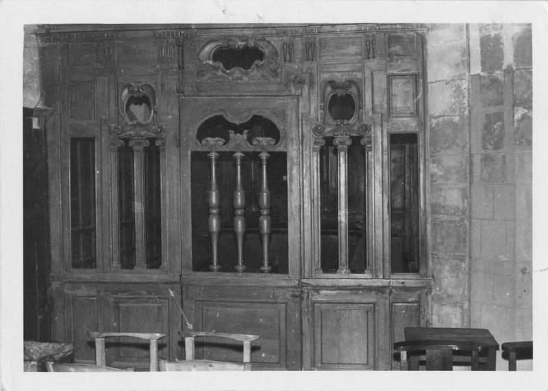 Impostes transformées en battants mobiles ; les panneaux latéraux semblent être un remploi