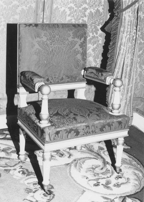bois : peint (blanc), doré ; damas (rouge)
