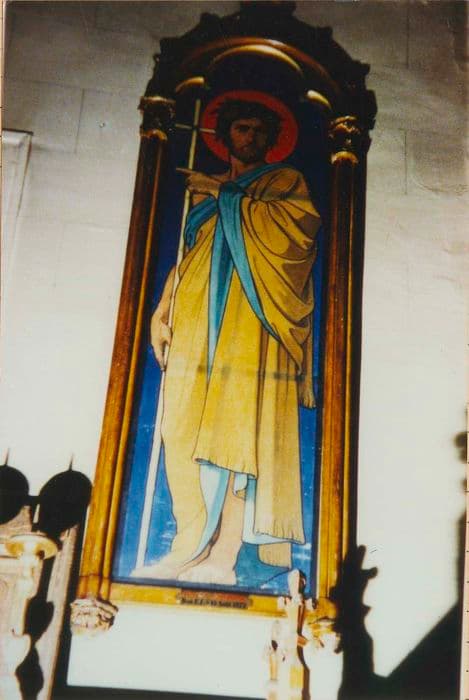 Saint Jacques est représenté avec son attribut habituel, le bâton de foulon en forme de massue recourbé.
