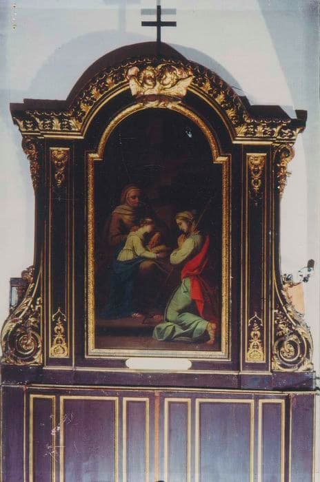 bois : ciré, doré, décor en relief ; toile (support) : peinture à l'huile