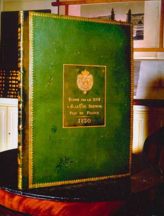 h = 134 ; la = 79 (Dimensions du volume hors format (planches)) ; Dimensions du volume format grand-aigle (planches) : h = 109, la = 70. Dimensions du volume format Jésus (planches) : h = 73,5, la = 55. Dimensions du volume textes : h = 41,5, la = 27