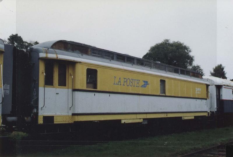 Voiture-poste PE 907 type OCEM-FL (Office Central d'Etude de Matériel - Faces Lisses) (ambulant de 16,60 m aménagé en fait en PA mixte). Une grande partie de ces véhicules était destinée au parc affecté au Réseau d'Alsace-Lorraine. Cet exemplaire est l'un des deux subsistant de la série de 66 unités construites en 1932-1933, et aussi l'unique exemplaire ayant conservé une partie des casiers de tri et les aménagements pour le convoyeur.