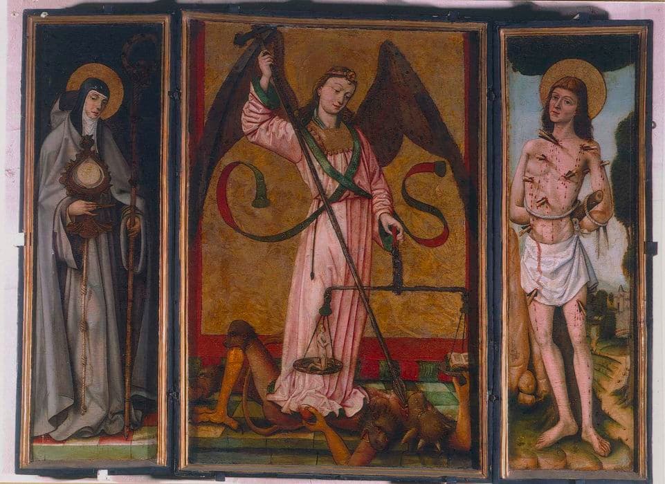 tableau : Saint Michel entouré de saint Sébastien et de sainte Claire d'Assise