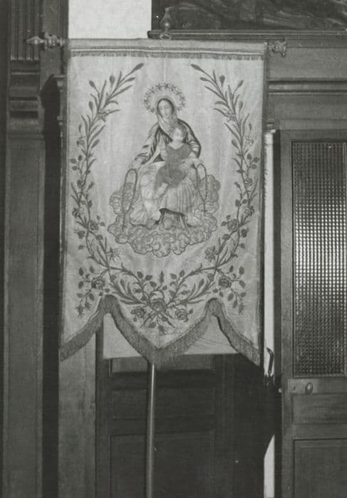 POP | Plateforme ouverte du patrimoinebannière de procession : Vierge à l'Enfant entourée de palmes