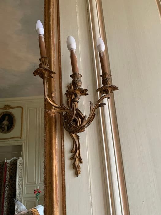 Luminaires d'applique de la chambre Angélique, à trois bras de lumière, de style Louis XV. Bronze doré.