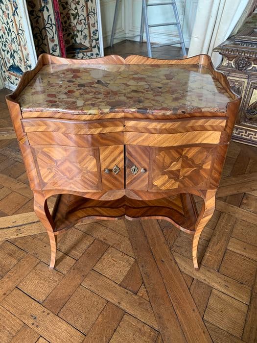 Meuble en bois et marbre.