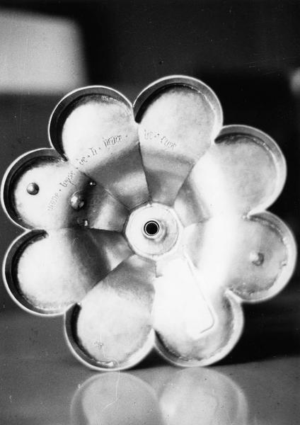 Patène redorée ; les tiges filetées du calice, quatre des huit boutons du noeud, la structure intérieure de la tige et, peut être, les émaux du noeud ont été refaits