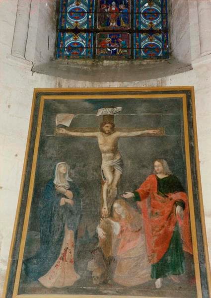 tableau : le Christ en croix avec la Vierge, sainte Madeleine et saint Jean