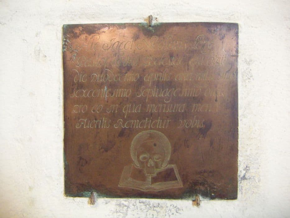 plaque funéraire : épitaphe sur plaque de cuivre