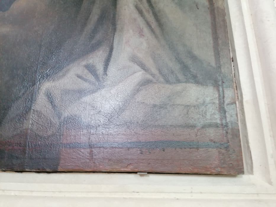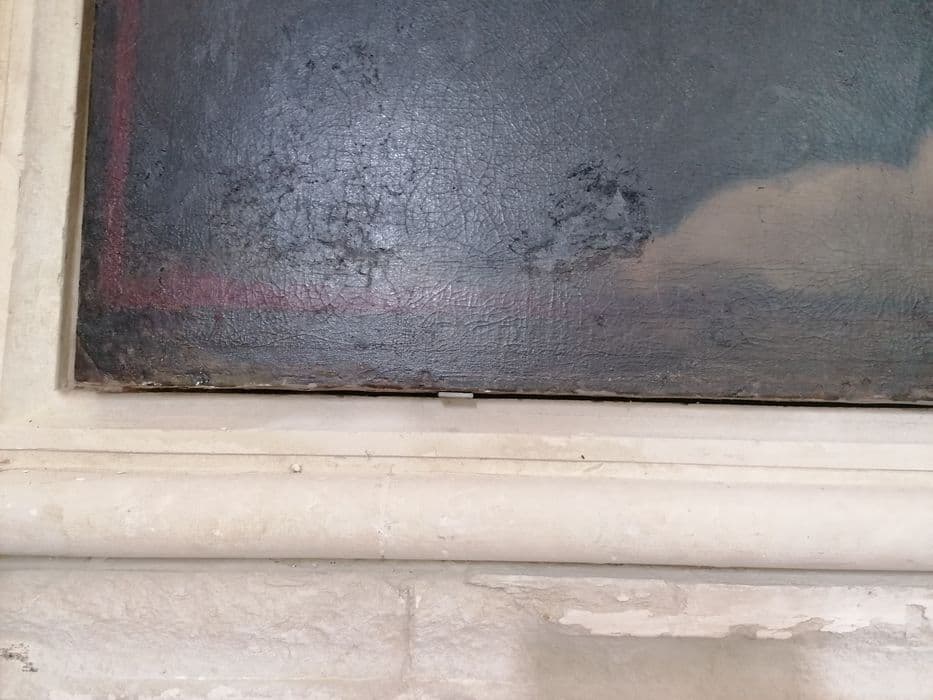 Huile sur toile, cadre bois, incluse dans un retable en pierre.