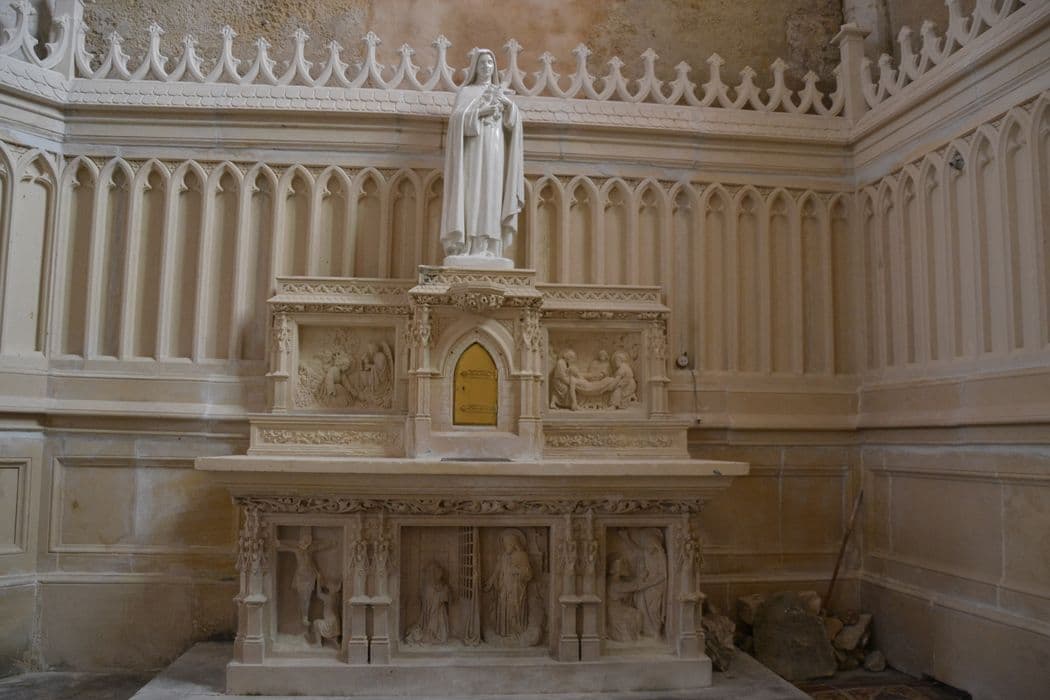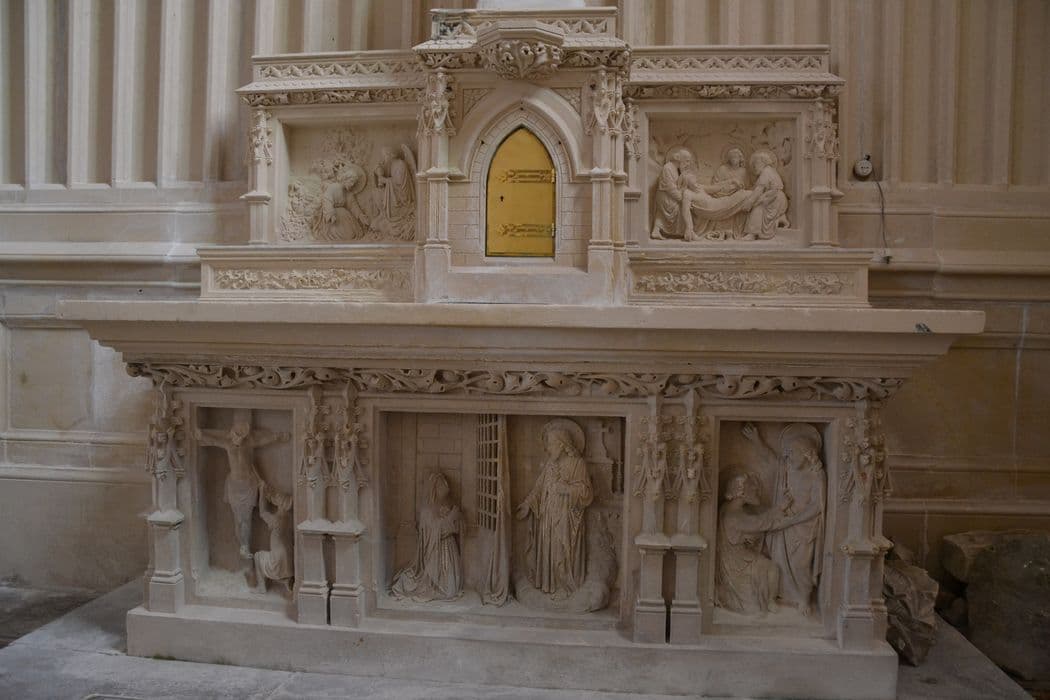 Travée centrale en chêne, pierre d'autel en marbre noir.