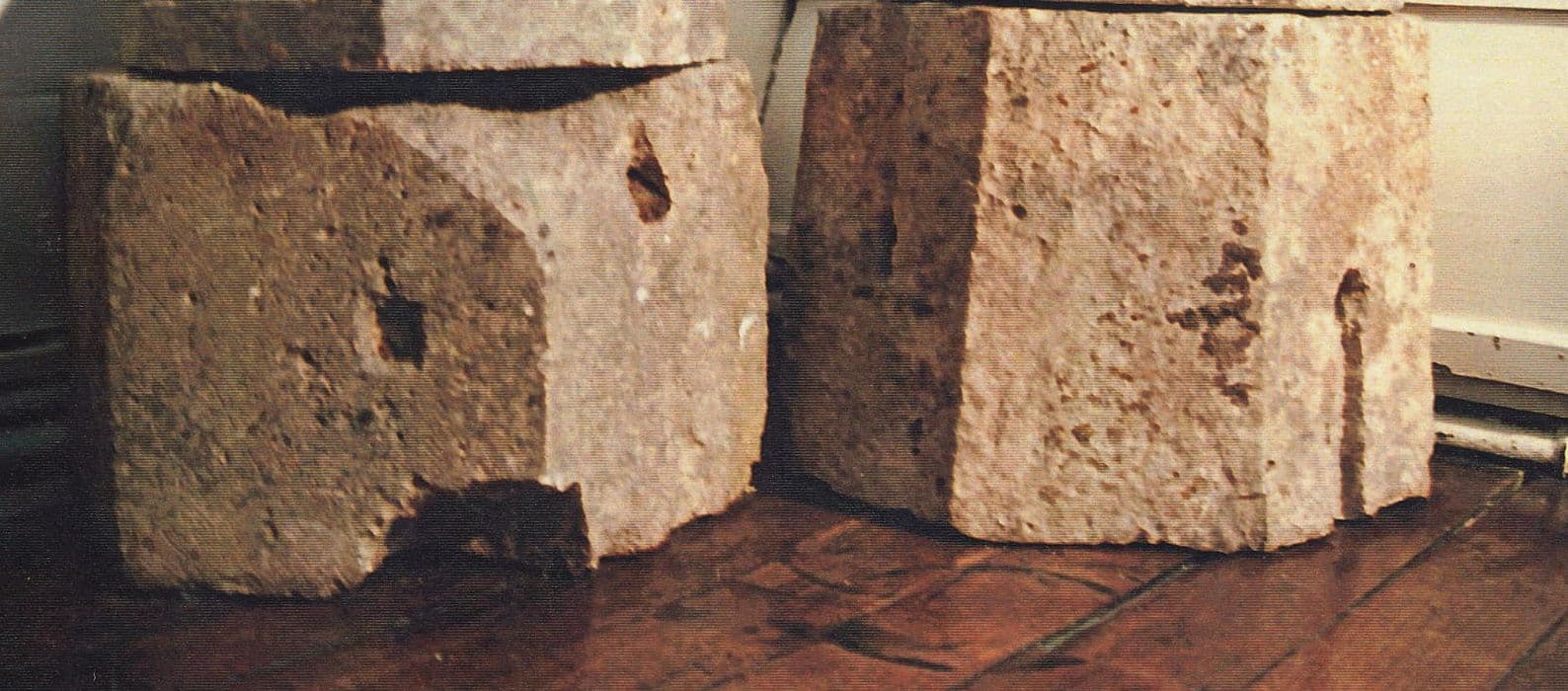 Deux fûts de colonnes à quatre et cinq pans.