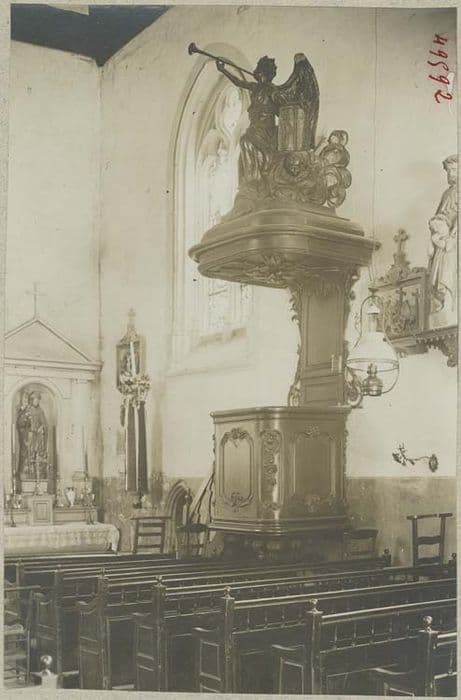 Cette chaire à prêcher, de style rocaille, présente une cuve carrée aux angles arrondis. L'abat-voix est surmonté d'un ange jouant de la trompette.