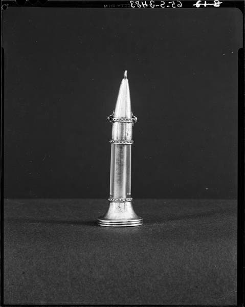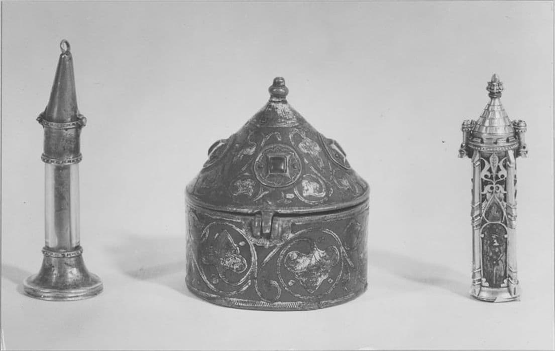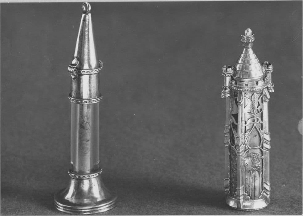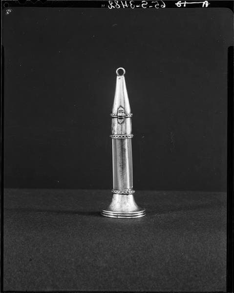 Petit reliquaire de forme cylindro-conique, en cristal monté sur argent.